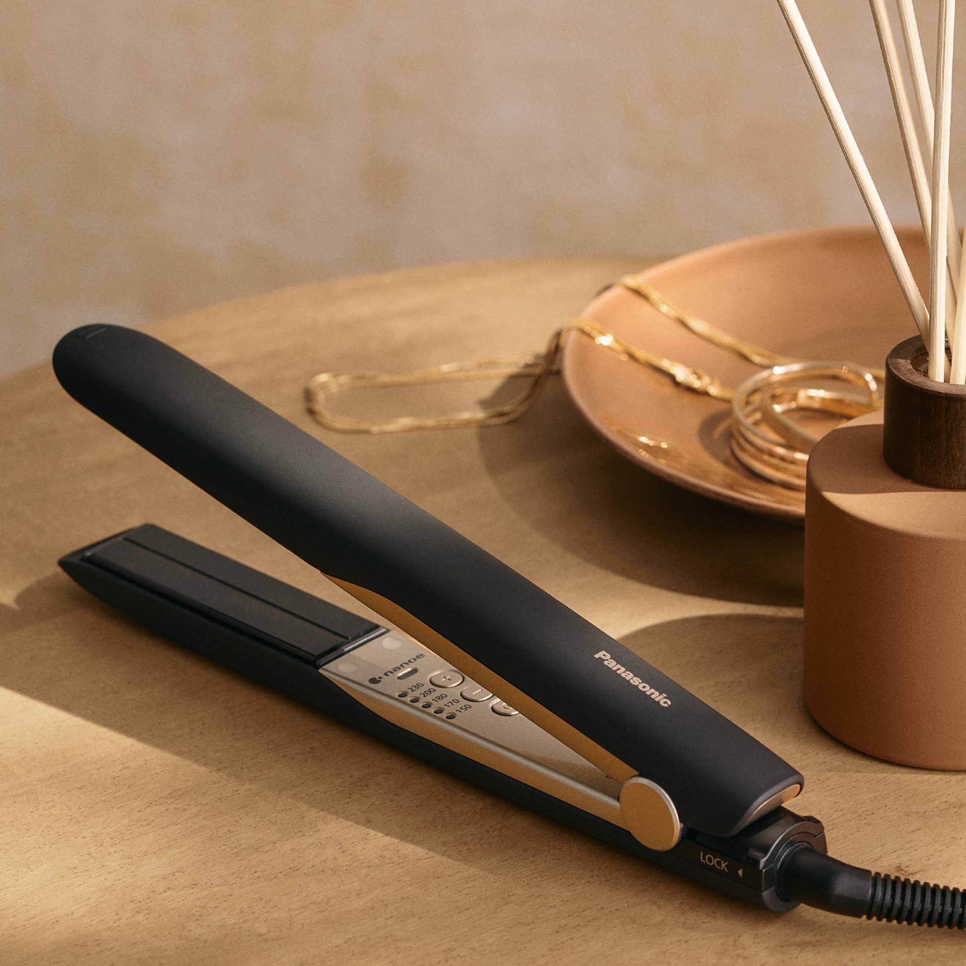 Panasonic EH-HS0E placă de îndreptat părul nanoe (senzor inteligent de temperatură, plăci mobile 3D flexibile, încălzire rapidă), negru