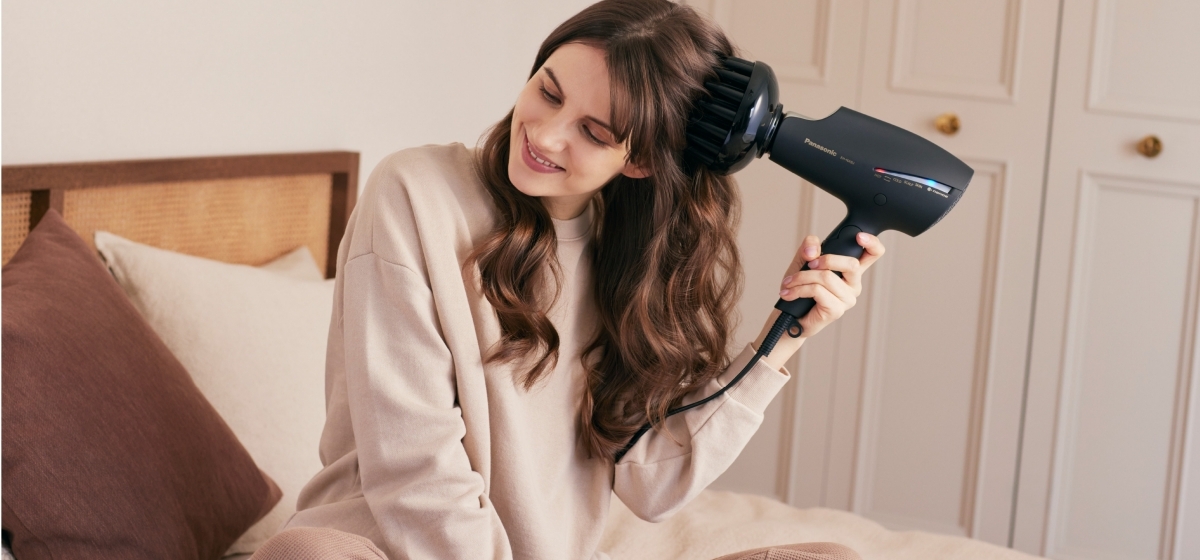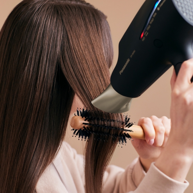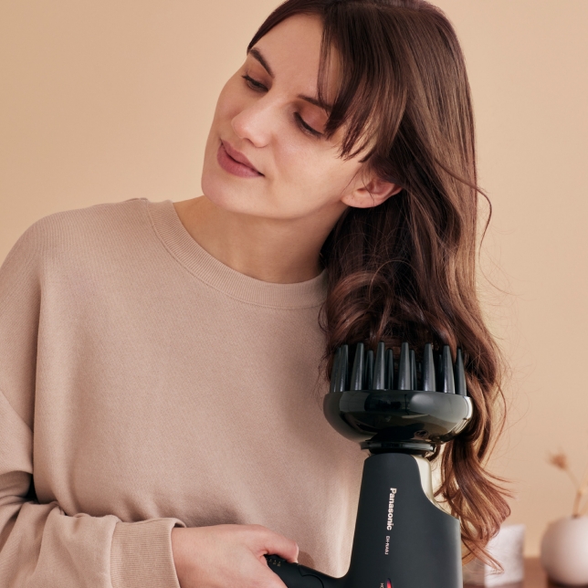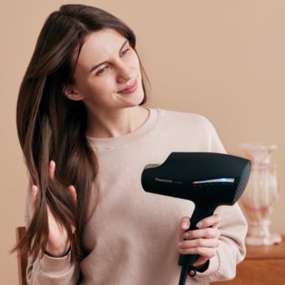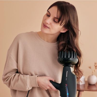 Uscătorul de păr avansat de la Panasonic este conceput pentru a utiliza combinația dintre tehnologia nanoe™ și tehnologia Double Mineral pentru a reduce deteriorarea părului în timp. Folosiți-l pentru a păstra umiditatea, pentru a reduce încrețirea, pentru a adăuga strălucire și pentru a preveni apariția unor noi vârfuri despicate*. Rezultatul final: păr cu aspect sănătos și care atrage atenția tot timpul.