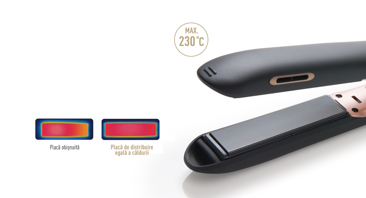 - Performanță de îndreptare a părului cu 20% mai bună Datorită elementului încălzitor stabil avansat (comparativ cu modelul anterior)