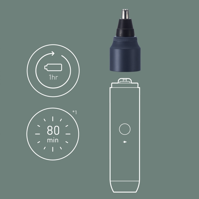 Acest trimmer pentru părul din nas/urechi/de pe față are un mecanism confortabil de aspirare. Ca urmare, nu se împrăștie părul tăiat în nas și în jurul nasului – făcându-l mai ușor de curățat după tundere și oferindu-vă imediat un aspect plăcut.