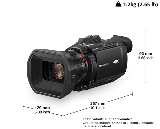 * Pentru o cameră video cu obiectiv integrat cu capacitate de întregistrare 4K 60p (la data de 6 ianuarie 2020. Cercetare realizată de Panasonic).