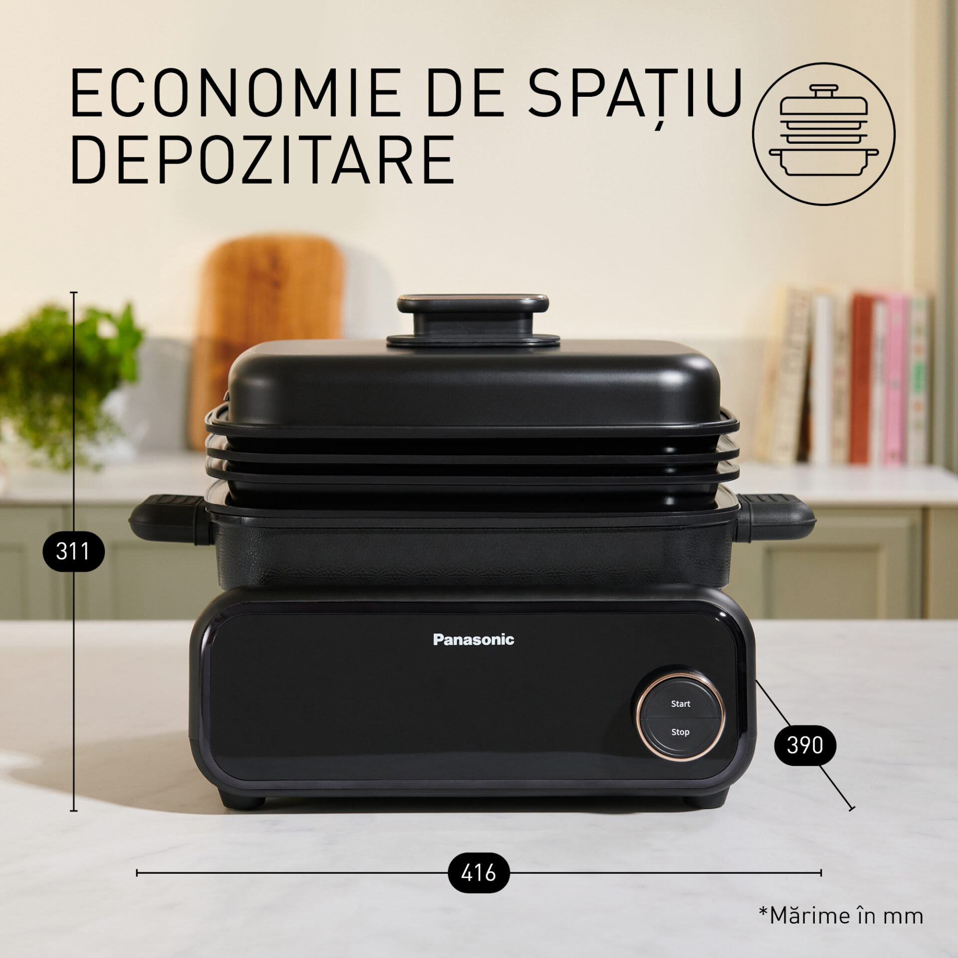 Panasonic NF-GM600 6-in-1 table-top Multi-Cooker (interval de temperatură 40–250 grade, 9 programe, operare manuală, extractor de fum integrat)