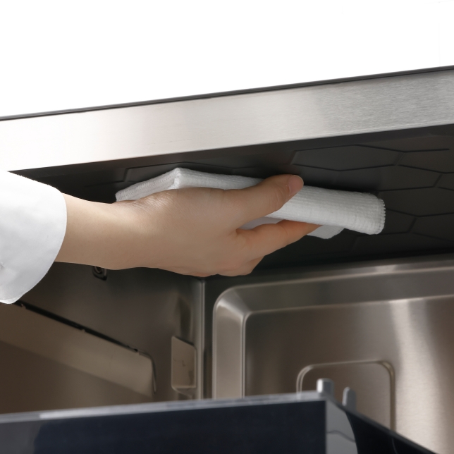 Gătitul este mai plăcut atunci când necesită mai puțină muncă. Acesta este motivul pentru care DS59 oferă o gamă întreagă de facilități pentru o curățare mai ușoară. Noua placă Panasonic încălzitoare pentru grătar, unică, și interiorul din oțel inoxidabil pot fi șterse simplu, împreună cu programe speciale de curățare cu abur. Tava pentru grătar se poate curăța în mașina de spălat vase, asigurând un efort de curățare mai mic tot timpul.