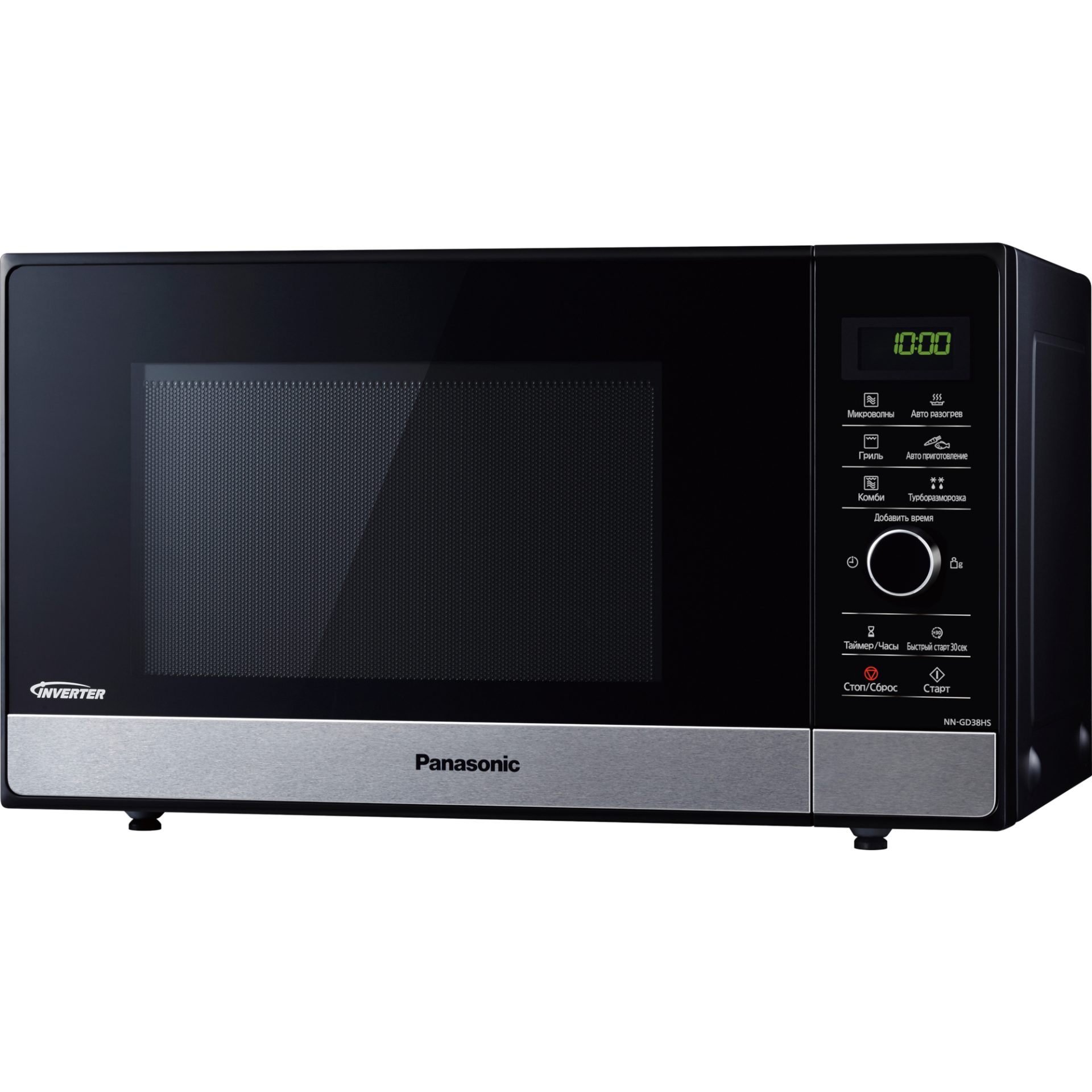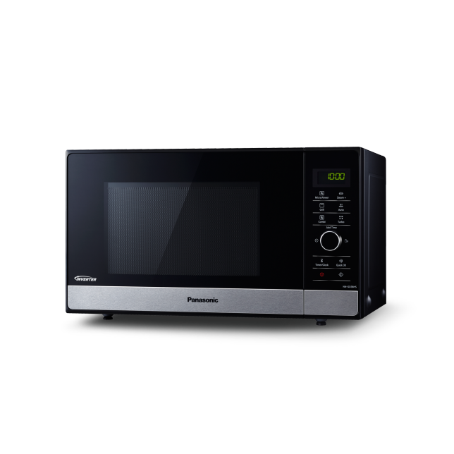 Panasonic NN-GD38 cuptor cu microunde cu grătar și invertor (23l, 1000W, 18 programe, vas Steam+ Pan, gătit rapid, setare timp), negru