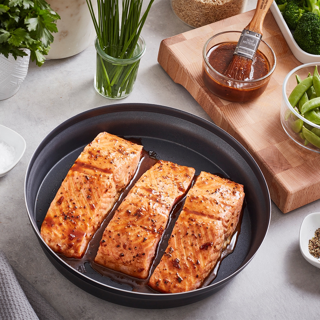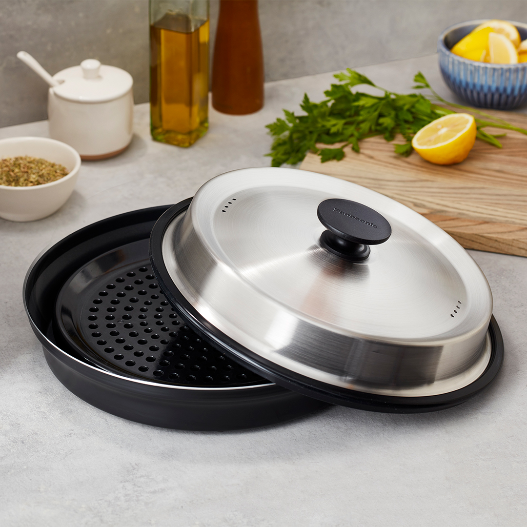 Folosind cuptorul cu microunde e ca și cum ați prăji pește sau pui pe plită, doar că mai ușor. Opțiunea Pan Sear prăjește alimentele de jos în sus, în timp ce capacul din oțel inoxidabil ajută la menținerea suculenței alimentelor.