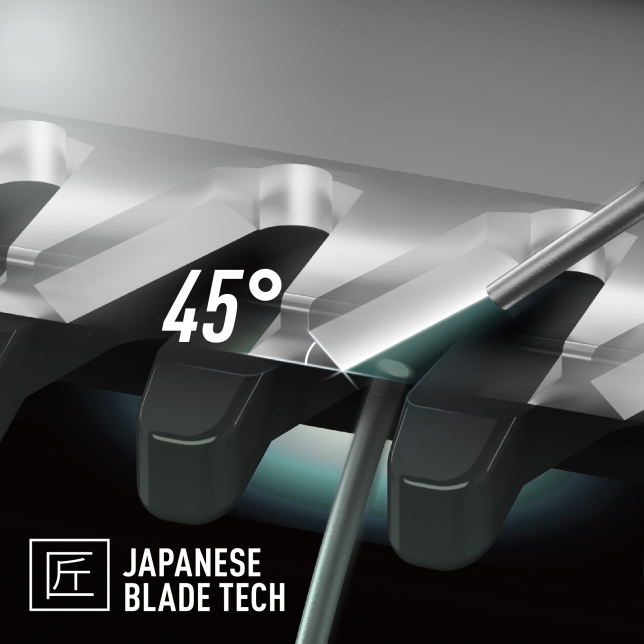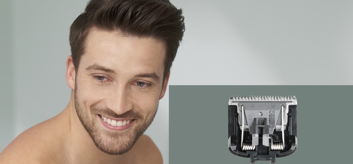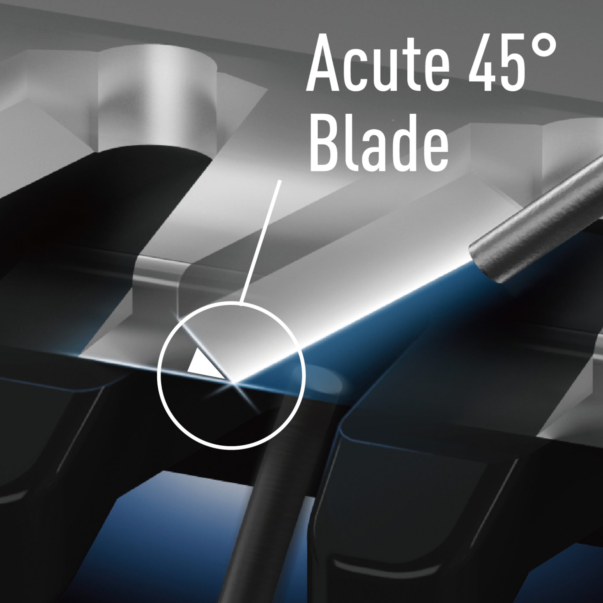 Lamele de tuns ascuțite nanometric la 45° au un design de ultimă generație, ideal pentru utilizarea pe părul gros și cu creștere rapidă. Vârfurile mai late ale lamei ridică părul creț sau plat cu ușurință, definesc barba și creează linii precise.